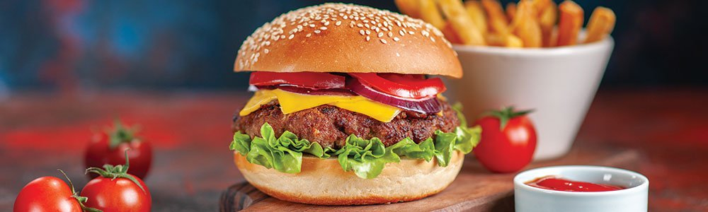 Wordt geserveerd met salade, friet en een sausje naar keuze
